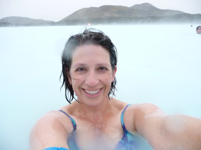 I walked outside, shocked by the icy air on my bare arms and legs. I gently, hurriedly, made my way tot he steps entering the lagoon, heeding the “slippery when wet” signs. I dipped one toe into the milky blue waters. Ahhhhhhh. Warmth. I quickly lowered myself in.