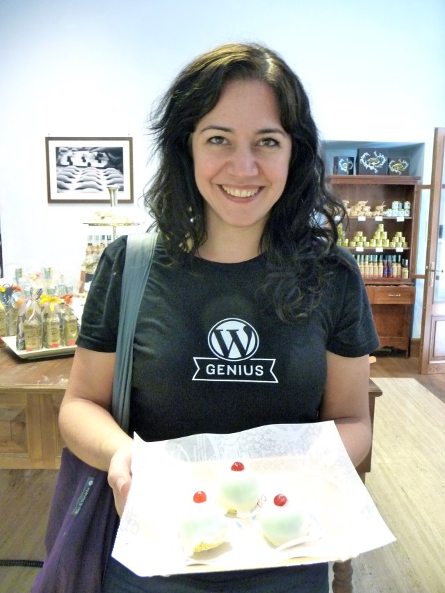 I landed, dropped my bag off at my hotel, and walked across town to meet my co-worker Sara who was hosting a local WordPress meetup. It was great to see a friendly face within a couple of hours of landing. Afterwards she and her friend Katie introduced me to my first taste of Italian sweets. They even gave us a small cup of almond milk to wash it down. Delicious!