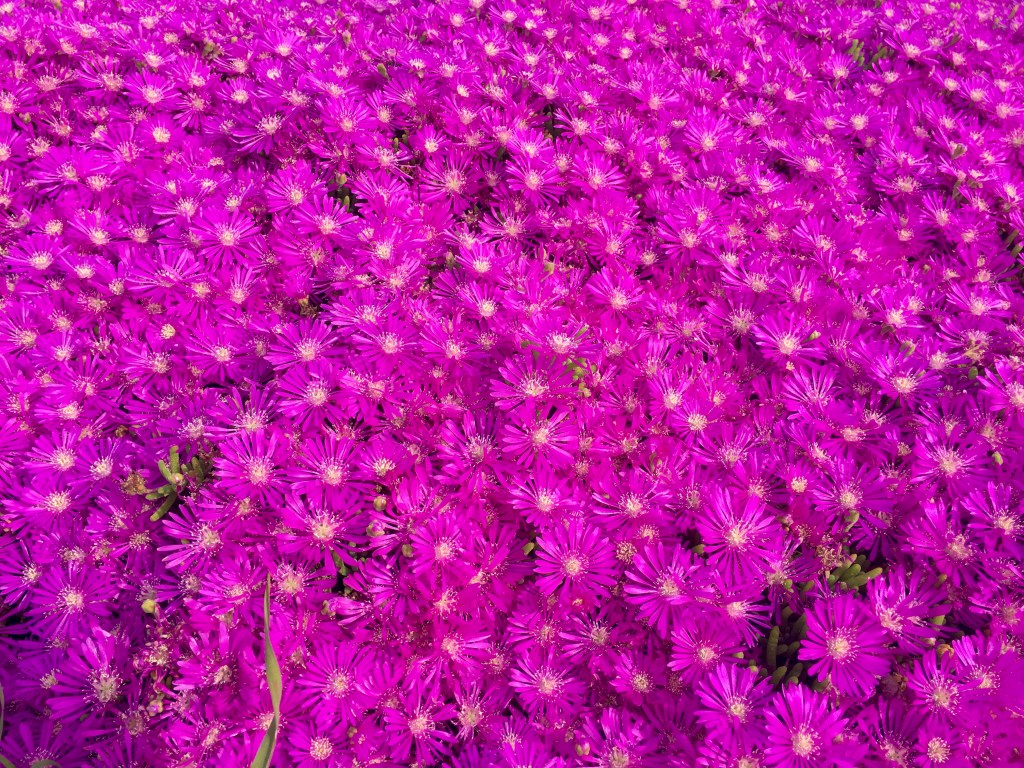 We left the park, driving back towards the neighborhoods of newly built beige row houses. And there, on the corner, we saw it, our Super Bloom! A carpet of fuchsia, blinding us in the afternoon sun. We pulled over to take pictures, not caring that it was someone’s carefully curated garden and not wildflowers aburst in the fields. We found our Super Bloom!