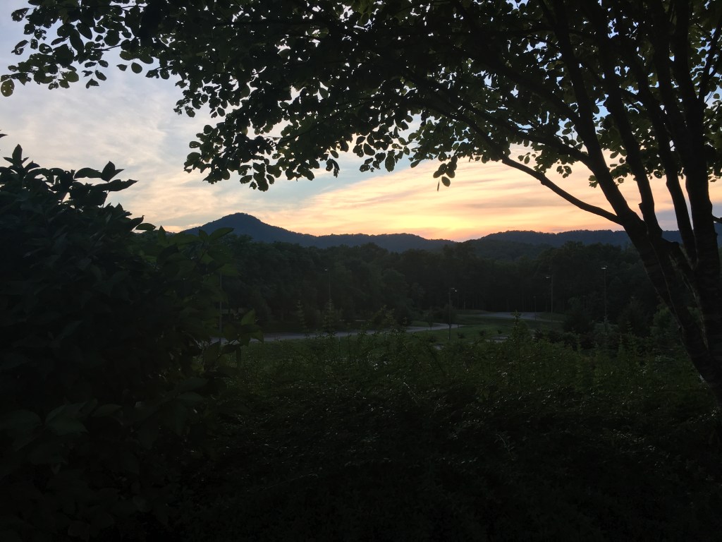 We walked through the empty grounds; no one else was there on a Friday night at 8:00 pm. We sat on benches and listened to fountains. We walked down mulched paths and watched fireflies light up. We read signs about NC native flora and fauna. We watched a hummingbird go from plant to plant to plant.