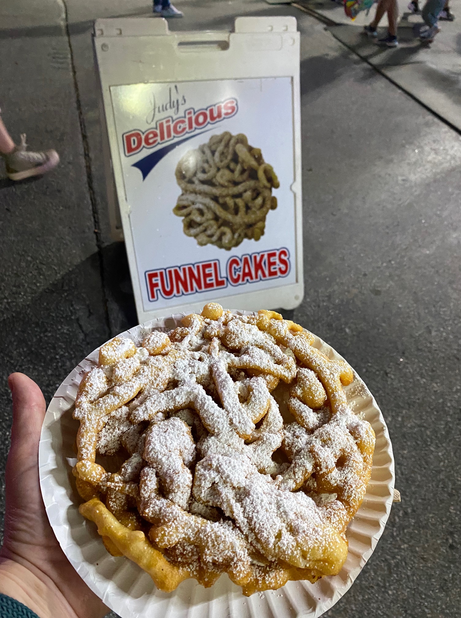 I was confounded. Why was the seemingly tamest of rides the most fear inducing? I was higher than on any of the other rides, and the most still. It wasn’t a fast ride, it was one that slowly, ever so slowly, rotated, with regular stops for riders to get on and off. We were exposed – the only thing that was keeping us from tumbling to the ground (and to a horrible accident) was a stress-fractured bar (how seriously should I take those cracks?), hopefully locked in place by the nonchalant fair worker. I wanted to take pictures of the fair from above, the dazzling neon lights from high in the sky. I couldn’t open my purse, much less take out my phone, for fear of dropping it. I smiled, I laughed, I persevered.