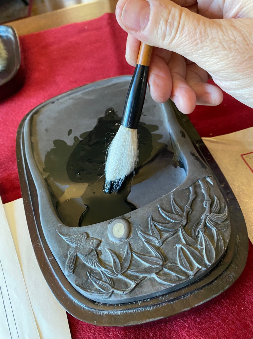 I spread the felt cloth over my dining room table. I opened my ink stone and began to grind the onyx black ink. I twisted my brush into a fine point, and began my exercises. For hours, I awkwardly practiced strokes – numbers first, then common characters such as happiness, longevity, and strength. I’ve lost the natural flow of strokes. But I haven’t lost the overwhelming feelings of calm and peacefulness as I silently place ink to paper. I’m grateful.