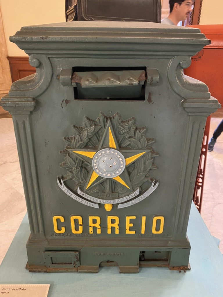 Each room highlighted a different aspect of the postal service. Stamps. Plates to make stamps. Seals for letters. Postal uniforms. Post boxes through the years. Postal art.