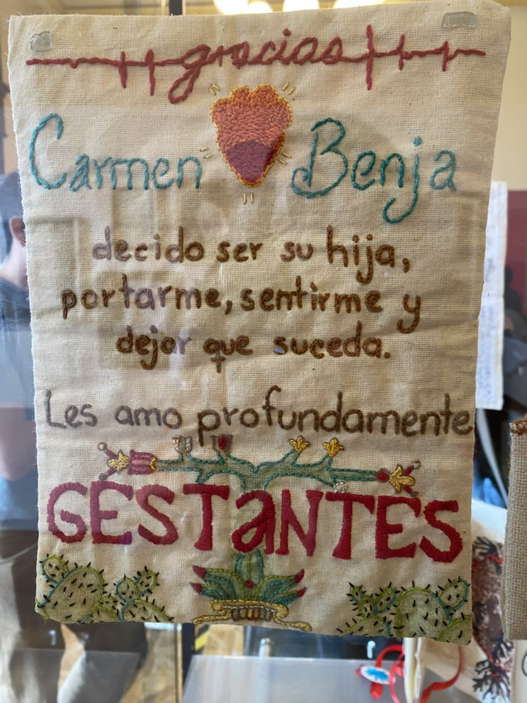 And then. There was the special exhibit. People who had stitched letters. Some of the letters were heartbreaking. Messages to children who had died. Messages to former lovers. Messages to family members who had passed into the next world. Messages to friends. All were stunningly beautiful.