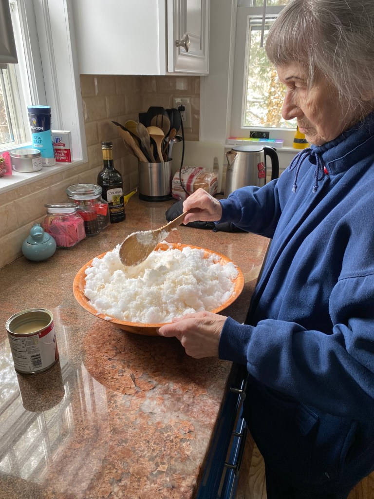 Secretly, longingly, I hoped that making snow cream would trigger memories for Mom. We had made snow cream during the few big storms of my childhood. Would that be far enough back that she might remember?