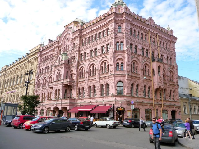 We rounded the corner and were met by huge buildings which Stas described as neoclassical Russian architecture, but I dubbed wedding cake architecture. Floors and floors of buildings sat like layers of cakes, decorated by multiple arches and curlicues. Some were pink, some white, some pale yellow. It was as if we were walking through aisles of a bakery, only instead of cakes, we were viewing buildings. And so many beautiful buildings! Around every corner we saw a building even more beautiful than those we had just passed. We’d stop and point and ask, “What’s that, Stas?” He’d look, and more often than not say, “Offices. Administrative building. Business.” Nothing out of the ordinary happening there, yet stunningly beautiful.