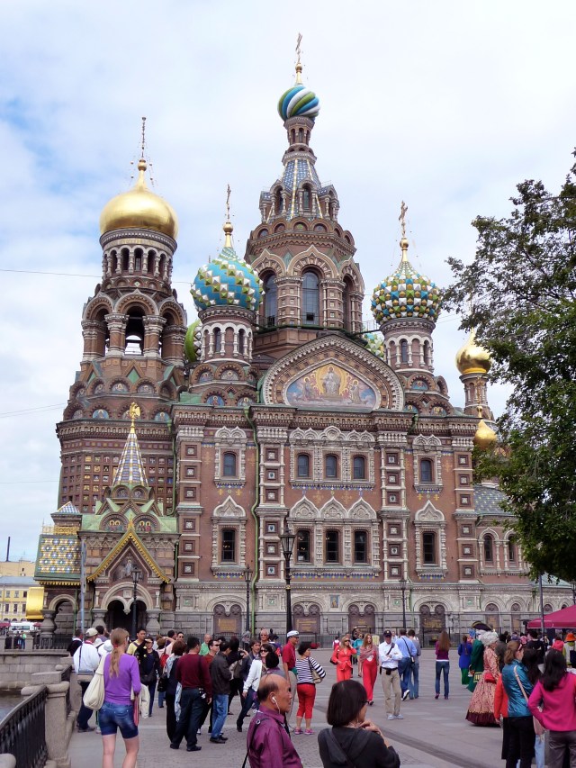 Stas led us to his favorite bridge, the Bankovsky Bridge, a tiny pedestrian bridge with griffins guarding each side. As we walked across, he instructed us to look in the distance. There it was! The Church on Spilled Blood! The famous Russian Orthodox church that looks like it’s made of candy. It’s called the Church on Spilled Blood because this was the exact spot where tsar Alexander II was assassinated.