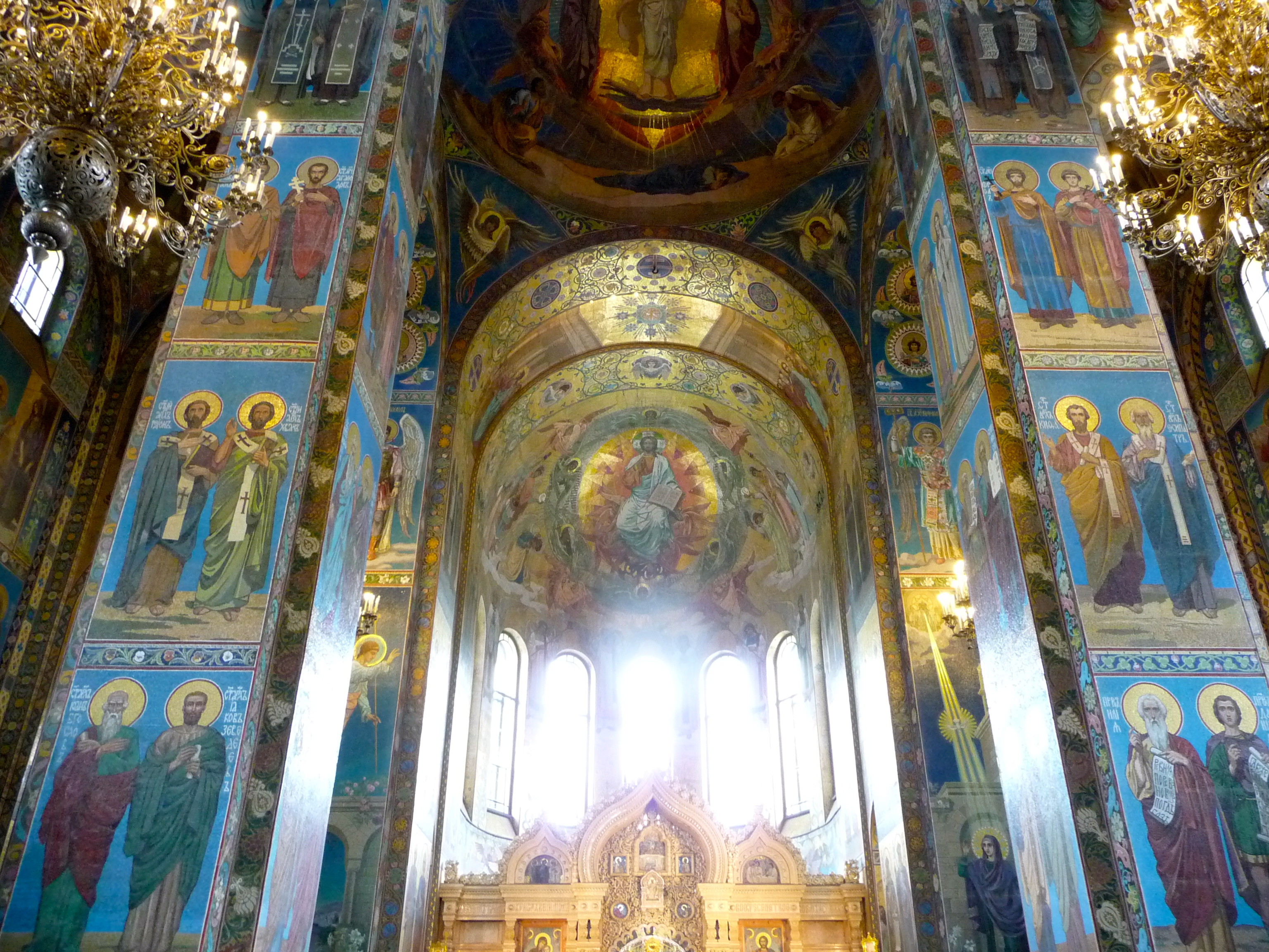 As I walked in, I stopped and gasped. As beautiful as the outside is, the inside is even more so. Every surface is covered in mosaic. My eyes rose upward, staring at the brilliant jewel toned tiles that made up pictures of saints on each of the columns.