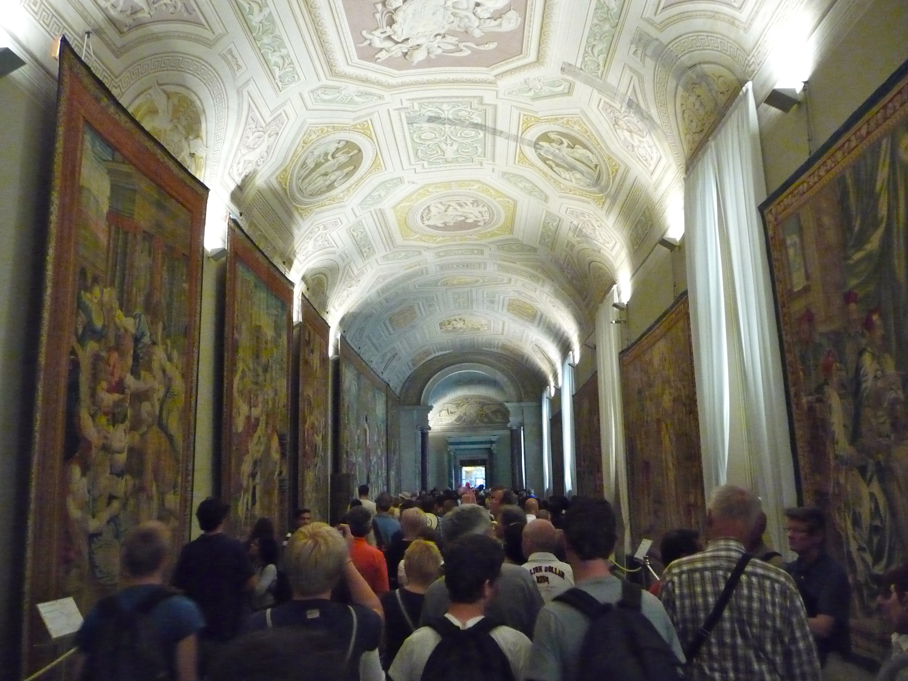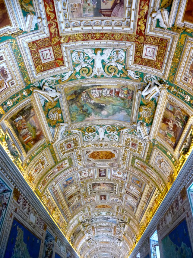I wasn’t prepared for the opulence of the Vatican Museum. Room after room of beautifully painted walls and ceilings. Halfway through the visit, my neck hurt from staring at the ceiling so much. On the one hand, I was disgusted by the wealth the church had accumulated. On the other had, what works of art. What incredible masterpieces had been created in the name of faith.