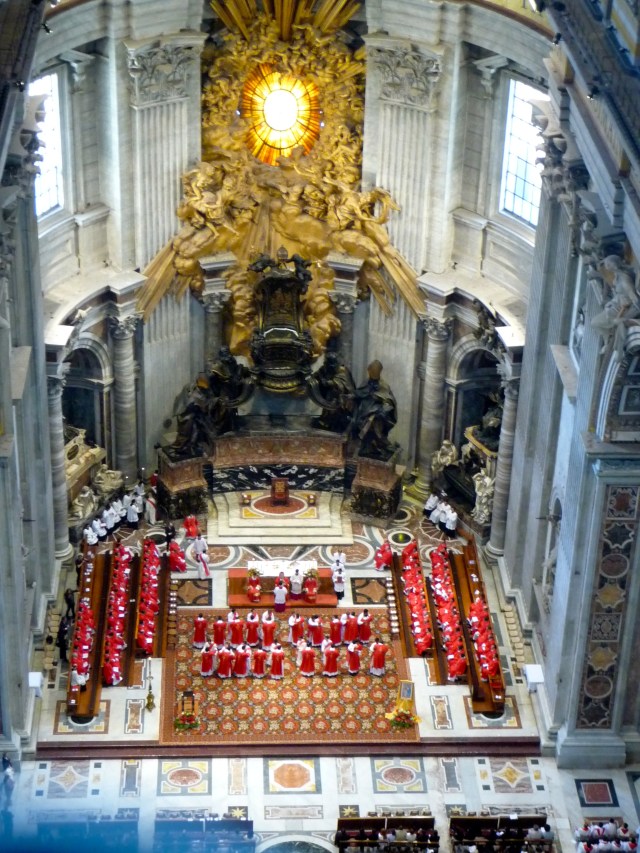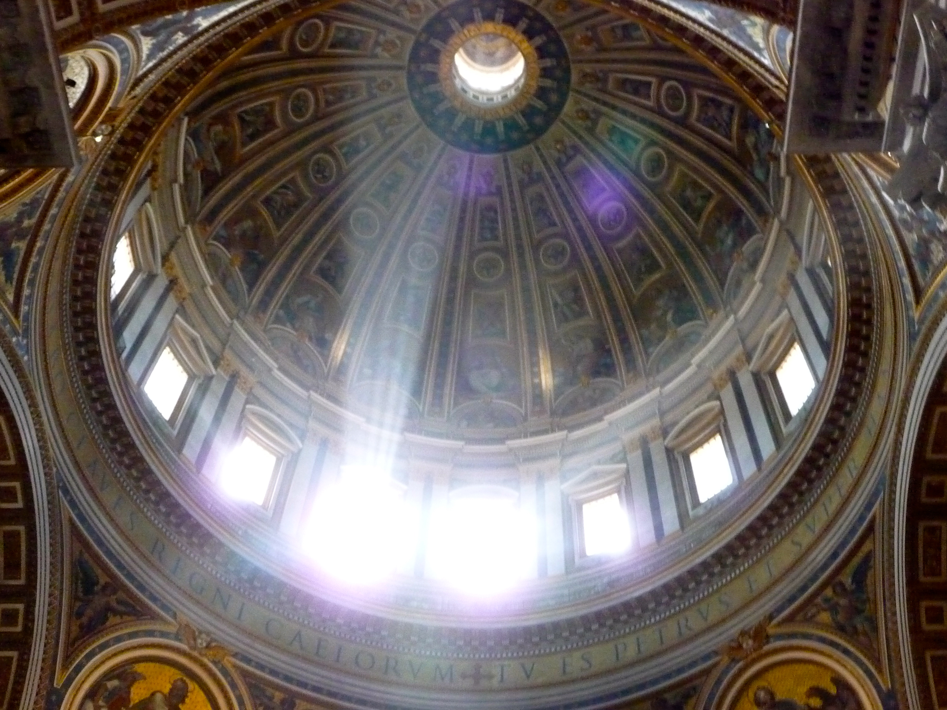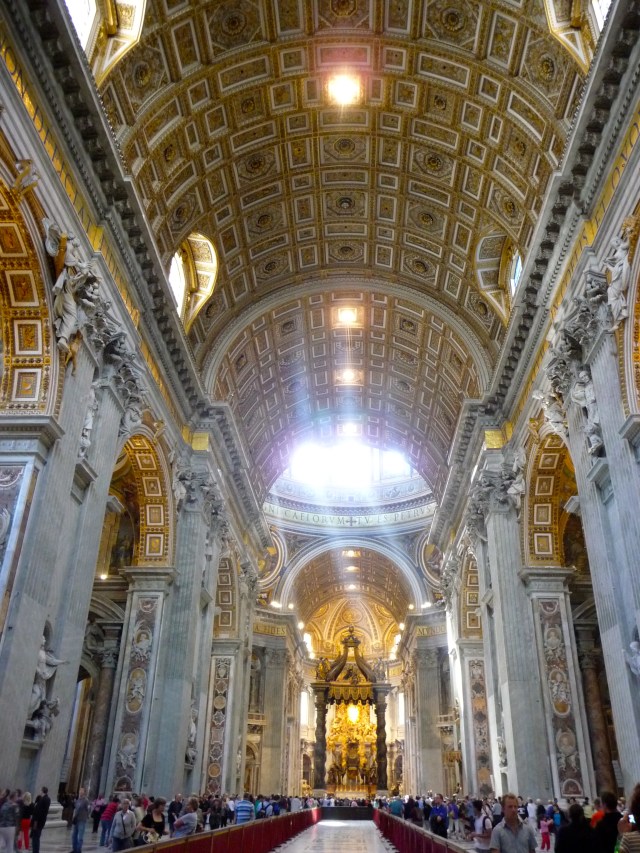 I was pushed out of the Sistine Chapel amidst a tour group, which was great, because it landed me directly at the entrance of St Peter’s Basilica. I walked in and stopped. As impressive as the Sistine Chapel was, I was unprepared for the grandeur and beauty of St Peter’s. I stood at the entrance, mouth agape. Sun shone through the high windows, the type of sun I used to always refer to as “Jesus rays” when I was younger. The rays of sun that appear so frequently in portraits of Christ, reigning down on the blessed.