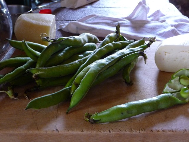 We snacked on fresh lava beans and soft, fresh pecorino cheese while waiting for the class to begin.