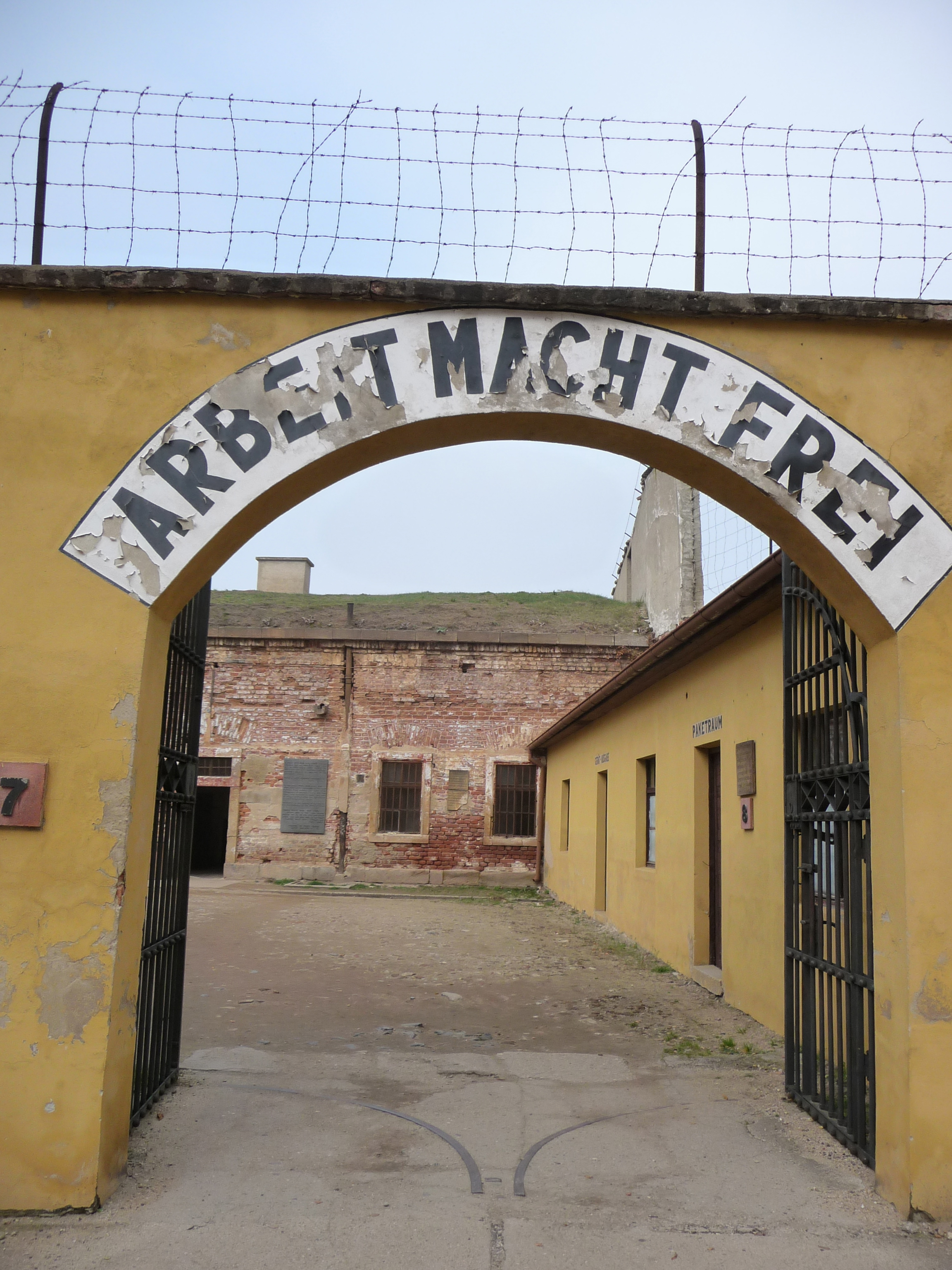 Our next stop was the Small Fortress. This was where political prisoners, Jewish and non-Jewish, were imprisoned. Because I was the only English speaker in our French tour group, I had my own guide, Camille. She led me through various blocks, group cells, solitary confinement cells, the sick room with only 12 beds (more people were sick than that, she explained, but most stayed in their group cells, infecting the others), and the arch which read “Arbeit Macht Frei” – work will make you free. She leaned over to me in a confidential stance. “Of course,” she whispered, “that was a lie. Once you entered the Small Fortress, you were never free.” We continued walking.