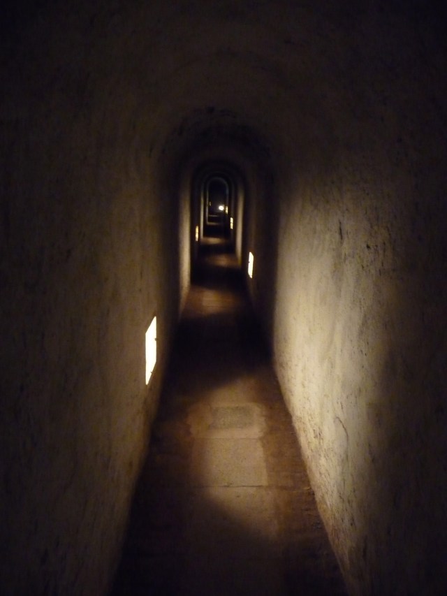 Why wasn’t she sharing tour information with me? She had been quite chatty up until that point. “So, what were these tunnels used for?” “The Germans blocked them off. They weren’t used for anything during WWII. Before, however, when this was a fortress, they would lure enemies into the yard outside then shoot them through the small gun holes.” Oh. After what felt like an eternity, we emerged from the darkness. Into the execution yard.